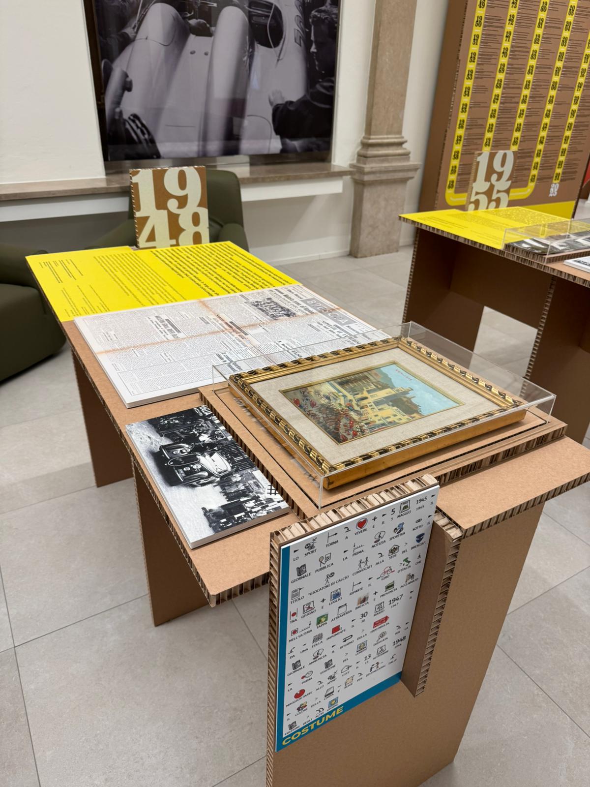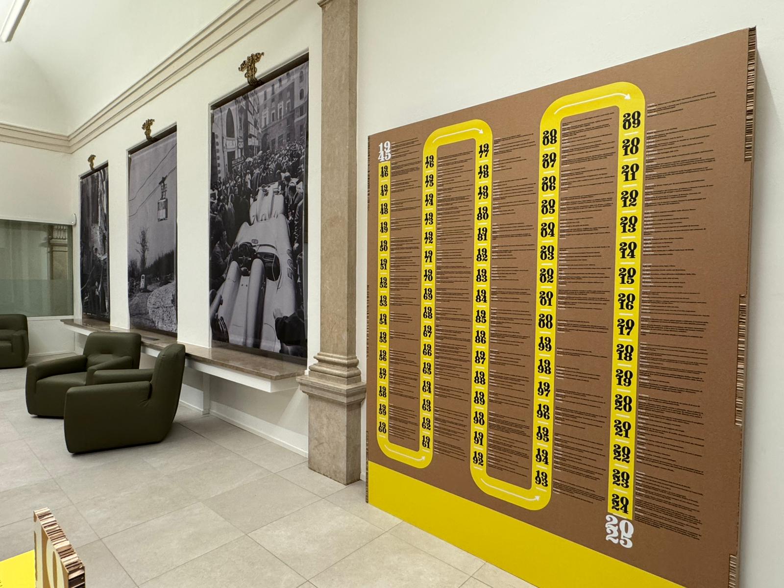 Per il museo Mille Miglia a Brescia abbiamo realizzato la mostra Tifo e motori della vittoria con i nostri servizi di allestimento e scenografia