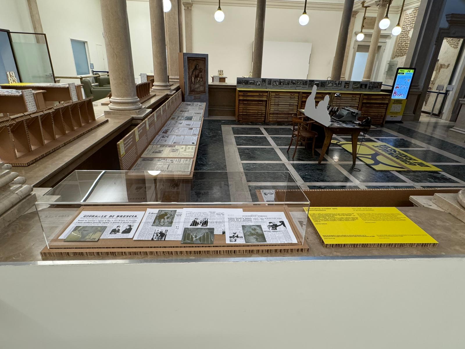 Allestimento presso Palazzo Negroboni, sede di Intesa Sanpaolo per il Sociale a Brescia, in occasione degli 80 anni del Giornale di Brescia