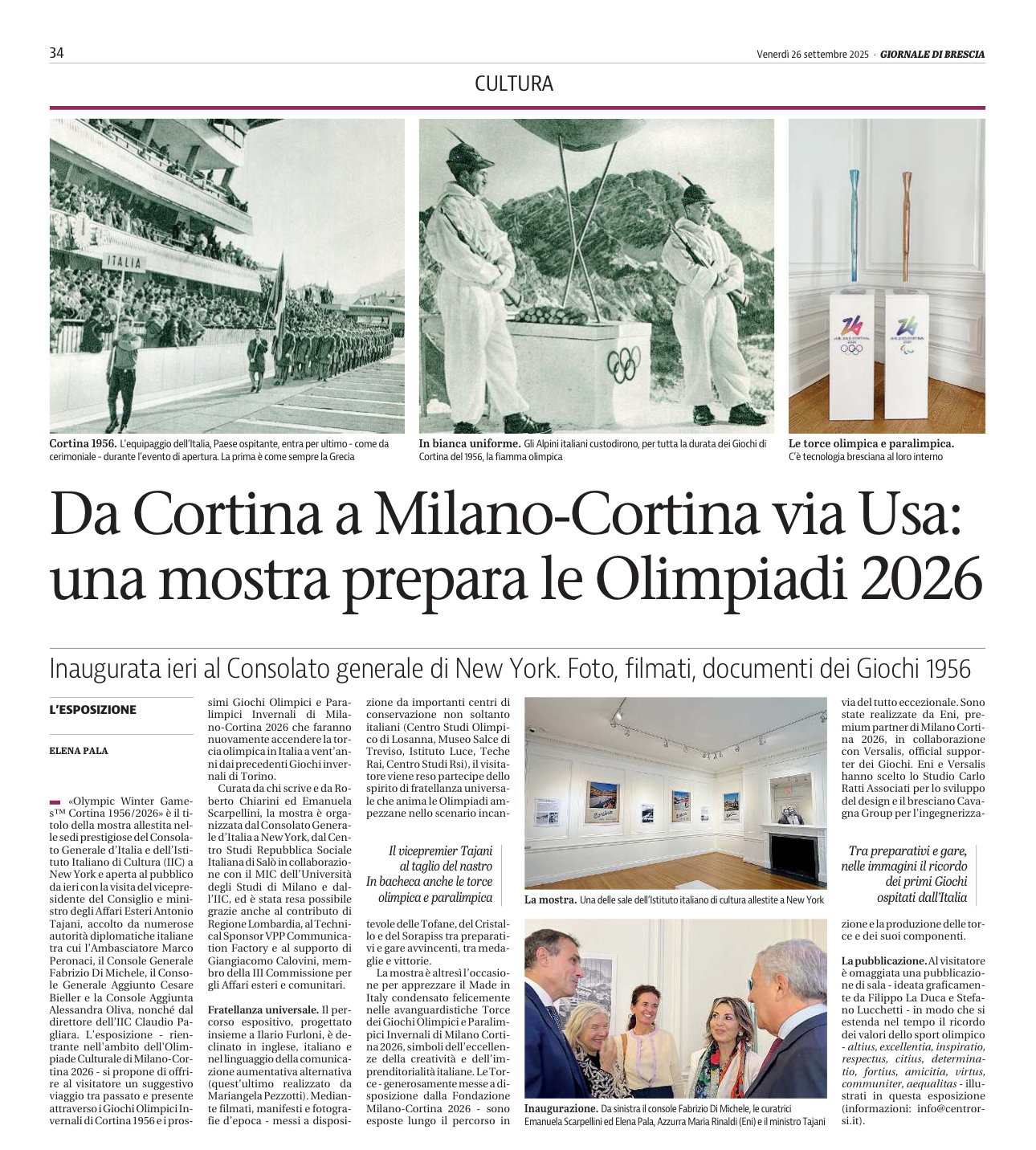 Abbiamo curato l’allestimento della mostra dedicata alle Olimpiadi Milano-Cortina 2026 presso il Consolato Generale d’Italia a New York, occupandoci delle stampe e dei materiali espositivi.