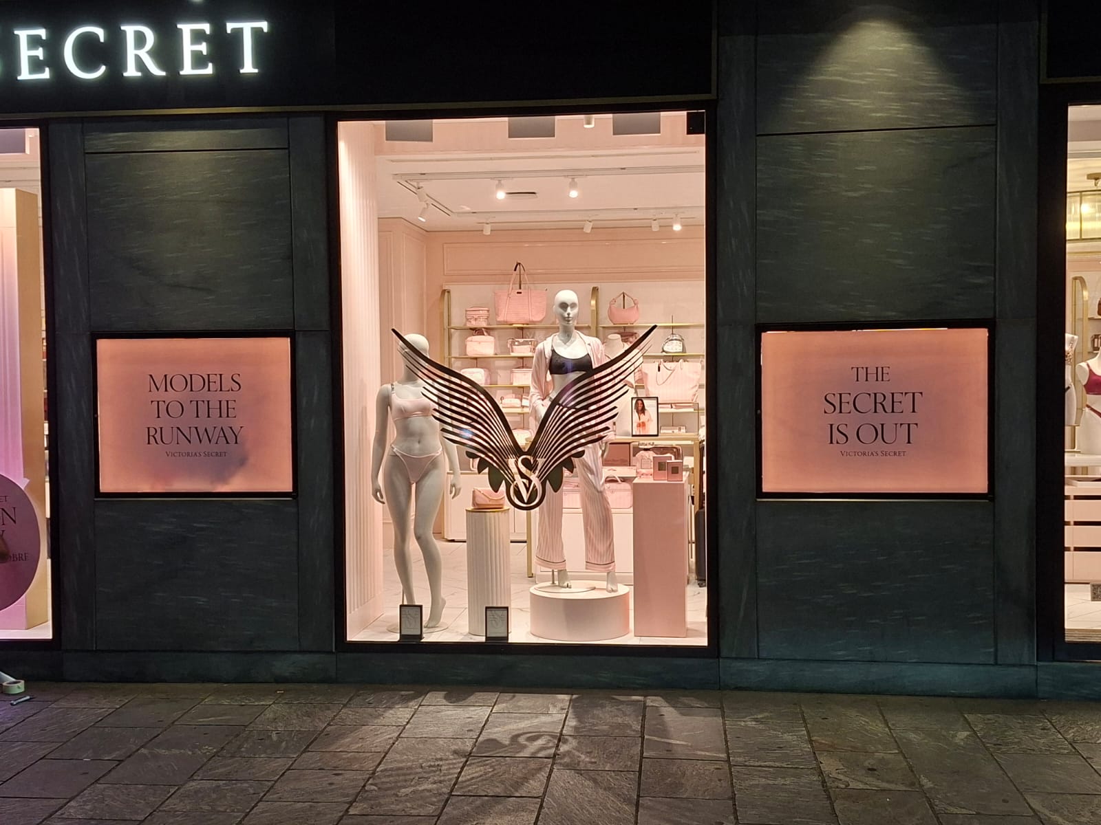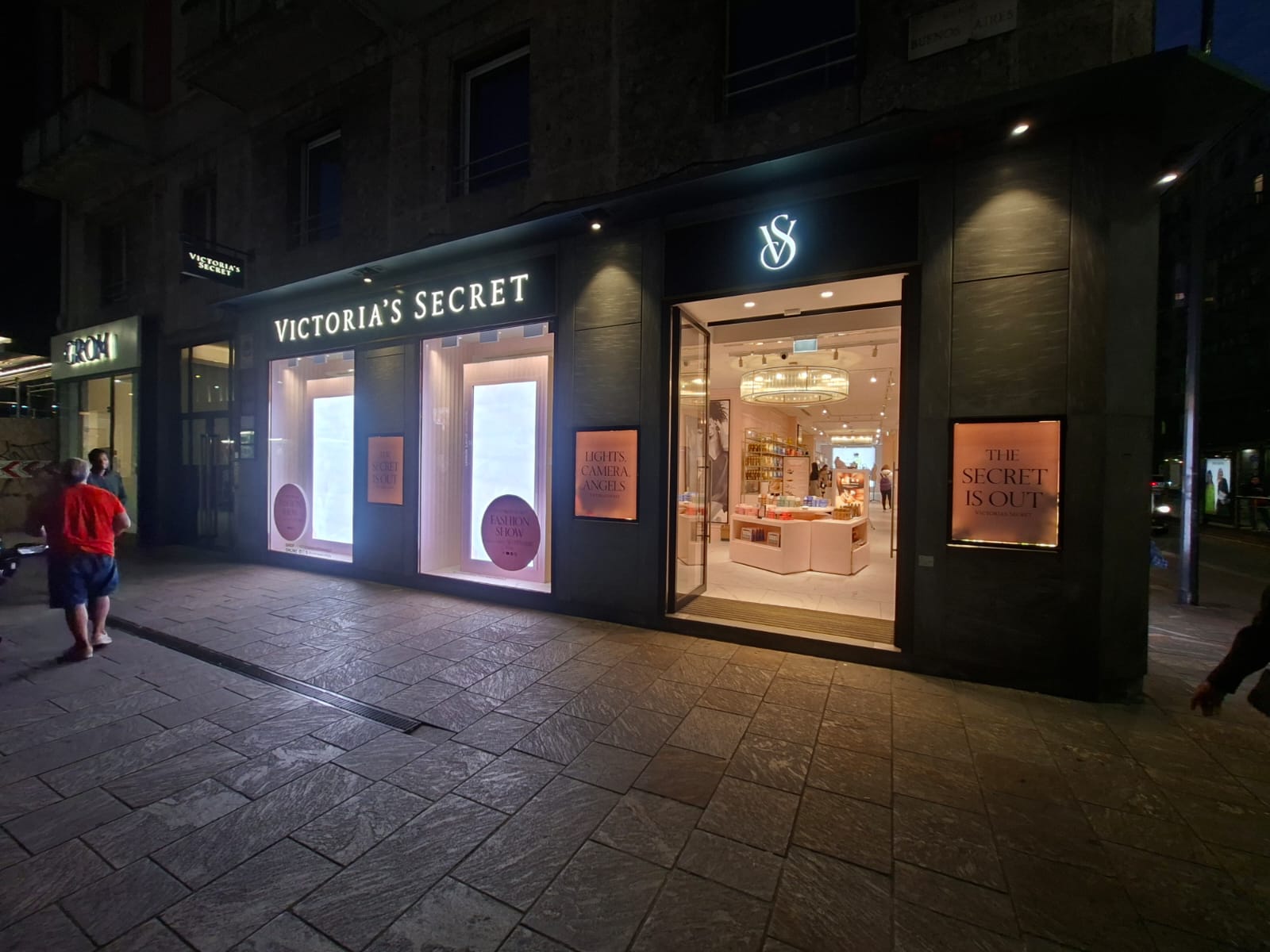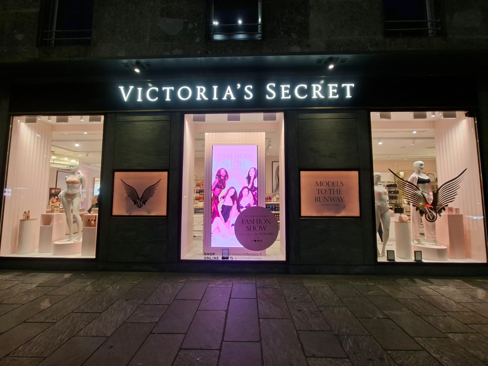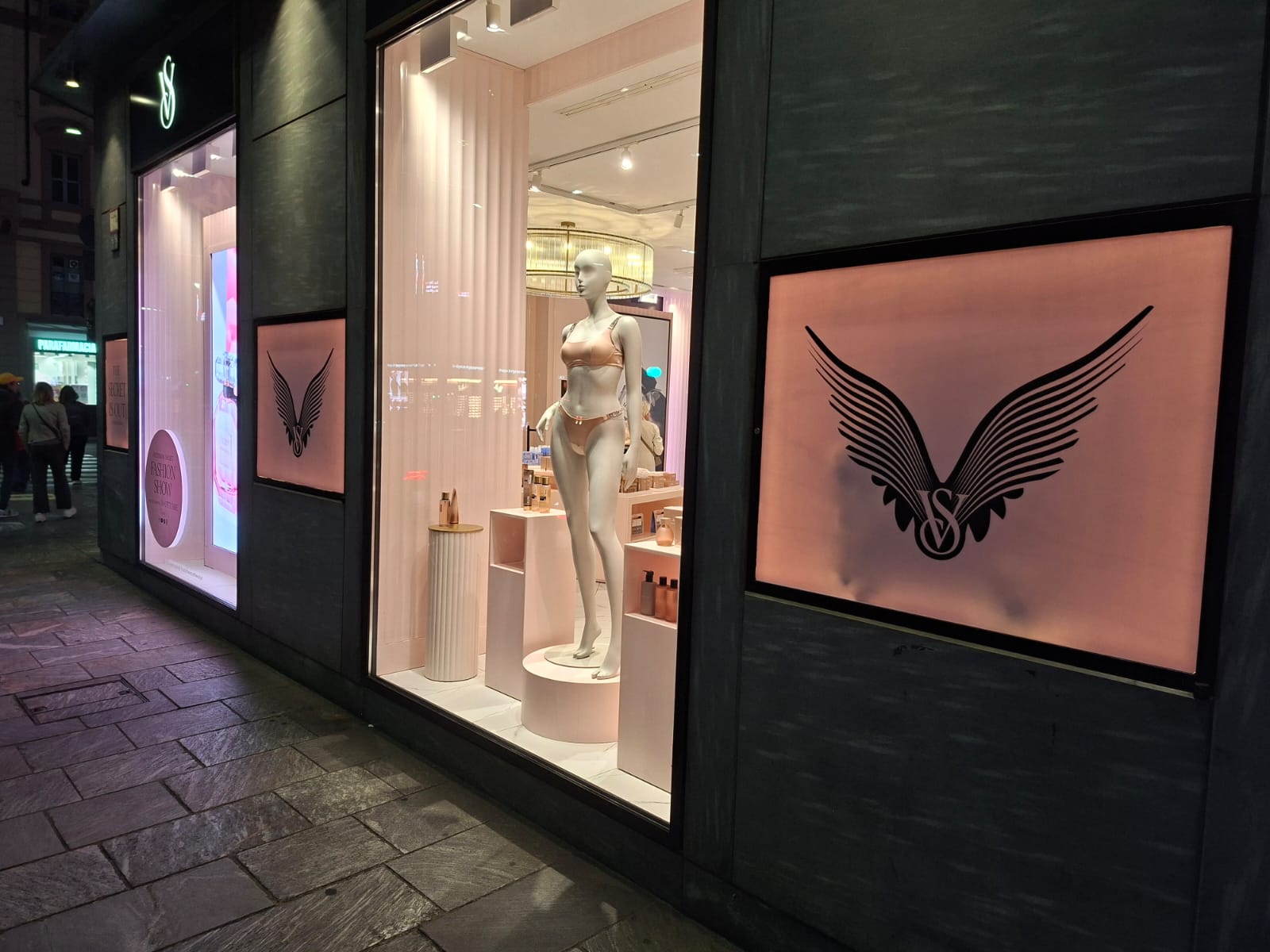 Allestimento vetrine presso il punto vendita Victoria’s Secret a Milano per promuovere il fashion show del 16 ottobre.
